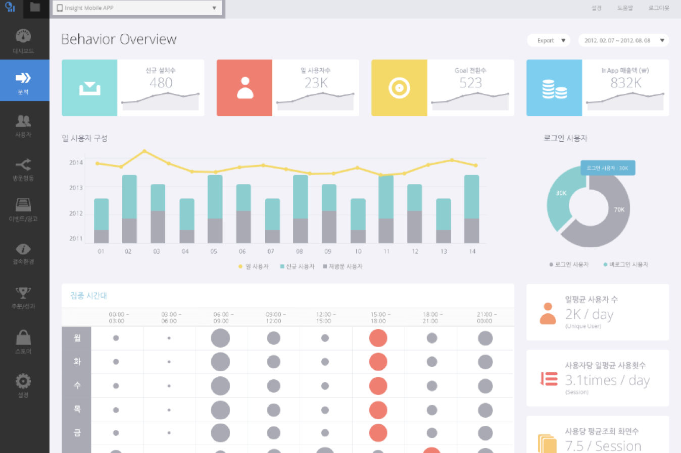Insight 솔루션은 프론트 디자인이 크게 바뀌지 않은 상태로 현재도 서비스 되고있습니다.